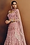 Featuring a baby pink and silver lehenga in net base with hand embroidery. It is paired with a tulle blouse and a dupatta. Style it with statement jewellery and embellished heels, perfect for a wedding, cocktail or sangeet ceremony.