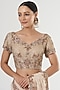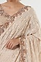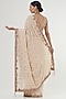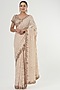 Featuring a beige saree in silk chiffon base with hand embroidery. It is paired with a matching blouse.