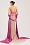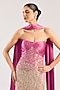 Featuring a blush gown in net base with hand embroidery. It is paired with a dupatta. Accentuate it with statement crystal or diamond earrings, a sleek high bun and metallic stilettos for a stylish ensemble, ideal for cocktail evenings, glamorous receptions or red-carpet style celebrations.