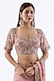 Featuring a blush pink kalidar saree in chiffon base with resham and zardosi embroidery. It is paired with a chantilly blouse and an underskirt. Accentuate with statement jewellery and heels for a wedding or sangeet ceremony.