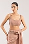 Featuring a blush pink draped saree in georgette base with crystal hand embellishment. It is paired with a blouse. Accentuate it with statement crystal jewellery, a sleek clutch and metallic stilettos for a stylish ensemble, ideal for cocktail evenings, glamorous receptions or red-carpet style celebrations.