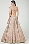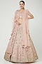 Featuring a blush pink lehenga in silk and organza base. It is paired with a matching blouse and a dupatta.