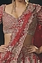 Featuring a burgundy and brick red ombre bridal lehenga in raw silk base with zardosi embroidery. It is paired with a matching blouse and a tulle dupatta.