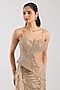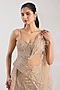 Featuring a champagne skirt saree in tulle base with hand embroidery. It is paired with a blouse. Accentuate it with dangler earrings and heels for a reception, cocktail, wedding or sangeet ceremony.