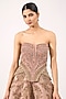 Champagne Woven Organza Jacquard Hand Embroidered Gown