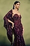 Featuring a cherry red sculpted in georgette base with tassels and crystal hand embroidery. It is paired with a cape drape. Style it with statement jewellery and embellished heels, perfect for a cocktail or sangeet ceremony.
