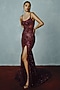 Featuring a cherry red gown in shimmer tulle base with sequins hand embellishments. Accentuate it with zircon or swarovski jewellery, embellished heels and a clutch for gala dinners, sangeet nights or cocktail ceremony.