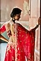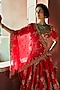 Featuring a crimson lehenga in silk base with embellishment. It is paired with an embroidered blouse and a net shoulder drape an a chiffon dupatta. Accentuate with dangler earrings and heels for festive occasions or wedding ceremonies.