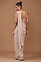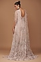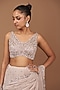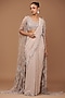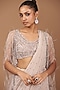 Featuring a dusty ivory grey saree in chiffon base with mukaish and pearl hand embroidery. It is paired with a blouse, petticoat and a cape. Accentuate with statement jewellery and heels for a wedding, sangeet or engagement ceremony.