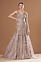 Featuring a dusty lilac gown in handwoven organza base with crystal and sequins embellishments.
