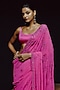 Featuring an electric pink saree in georgette base with motif hand embroidery. It is paired with a blouse and an underskirt. Accentuate it with zircon or swarovski jewellery, embellished heels and a clutch for a sangeet or cocktail ceremony.