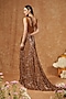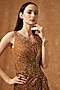Featuring a gold gown in handwoven organza base with sequins and crystal embellishments.