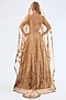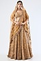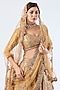 Featuring a golden lehenga in tissue base with embroidery. It is paired with an embroidered blouse, an organza dupatta and a tulle veil. Accentuate it with statement jewellery and heels for a wedding, a bridal look or an engagement ceremony.