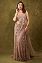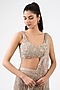 Featuring a greyish silver gown saree in shimmer tulle base with sequins and pearl embroidery. It is paired with an embroidered blouse, dupatta and an underskirt. Accessorise with statement jewellery and heels for a festive look and sangeet ceremonies.