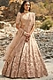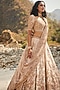 Featuring an ivory lehenga in raw silk base with dori, resham, and zardosi embroidery. It is paired with a matching blouse and two tulle dupattas.