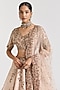 Featuring an ivory lehenga in raw silk base with embroidery. It is paired with an embroidered blouse and a net dupatta. Accentuate the designer lehenga with emerald or meenakari jewellery, embellished heels and a potli bag for a bridal look, Perfect wear for your wedding, sangeet or engagement ceremony.