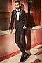 Featuring a black tuxedo jacket in japanese crepe base with thread beads detailing. It is paired with a white cotton shirt, pants and an embellished bow-tie. Style it with leather shoes for a sophisticated ensemble, ideal for cocktail parties or evening receptions.
