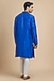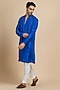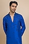 Featuring a cobalt blue kurta in silk base with embroidery. It is paired with ivory trousers. Style it with kolhapuri sandals for a festive occasion, wedding, sangeet or engagement ceremony, exuding traditional charm and elegance.