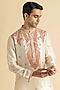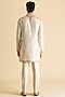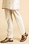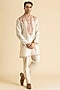 Featuring a cream kurta in raw silk base. It is paired with pants. Accentuate it with pair of kolhapuri sandals and a bracelet for a festive occasion, wedding, engagement or pooja ceremony.