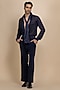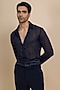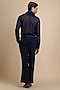 Featuring an indigo blue shirt in georgette base with hand embroidery. It is paired with japanese crepe trousers and a silk satin scarf. Style it with shoes for a day-to-night dressing, evening gathering or festive soirees.