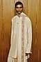 Featuring an ivory kurta in cotton silk base with embroidery. It is paired with salwar. Style it with a pair of loafers and a bracelet for daytime weddings, engagement or sangeet functions.