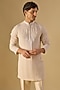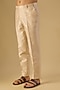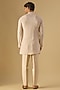 Featuring a beige kurta in georgette base with threadwork and embroidery. It is paired with raw silk straight-cut trousers. Style it with kolhapuri sandals for a festive occasion, sangeet, wedding or engagement ceremony, exuding traditional charm and elegance.