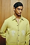 Lime Green Banana Crepe Embroidered Jacket Set