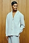 Featuring a powder blue shacket in denim base. It is paired with sequins lycra embroidered wide-legged trousers. Style it with pair of shoes and a watch for a classy look. Perfect for evening celebrations or cocktail parties.