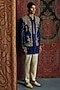 Featuring a royal blue indowestern in raw silk base with kashmiri embroidery. It is paired with a silk kurta and ivory lycra cotton pants. Accentuate it with black loafers and a sleek watch for a polished fusion look, perfect for receptions, cocktail parties or festive evening events.