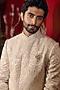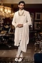 Featuring an unicorn silver sherwani in dutch satin base with kiran dori hand embroidery. It is paired with a moonga silk kurta and cotton silk churidar. Style it with a dupatta and malas for a wedding or engagement ceremony.