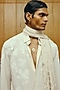 Featuring a white shirt in crepe base with embroidery. It is paired with cream cotton silk pants and a georgette stole. Style it with a watch and sneakers for coffee runs or an evening look.