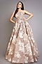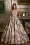 Featuring a mauve gown in silk organza, woven organza and tulle base with sequins and thread embellishments.
