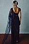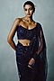Featuring a midnight blue saree in tulle and net base with beads hand embellishment. It is paired with a corset and an underskirt. Accentuate it with zircon or swarovski jewellery, embellished heels and a clutch for a sangeet or cocktail ceremony.