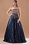 Midnight Blue Satin & Tulle Embroidered Ombre Gown