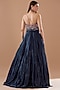 Featuring a midnight blue ombre gown in satin and tulle base with embroidery.