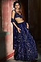Featuring a midnight blue lehenga in tulle base with dori embroidery. It is paired with an embroidered blouse and a dupatta. Accentuate with dangler earrings and heels for festive occasions or wedding ceremonies.