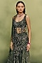 Featuring a moss green skirt in shimmer net base with beaded motifs hand embroidery and embellishments. It is paired with a blouse and a drape. Style it with statement dangler earrings, soft curls and heels, perfect for a cocktail, mehendi or sangeet ceremony.