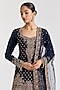 Featuring a navy blue kurta in crepe base with gold hand embellishments. It is paired with embellished sharara pants and a tulle dupatta. Accentuate the designer sharara with gold or kundan polki jewellery, embellished heels and a potli bag for a bridal look, Perfect wear for your wedding, sangeet or engagement ceremony.