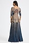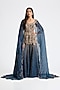 Featuring a navy blue kurta in organza base with crystal and bead hand embroidery. It is paired with sharara pants and a 3D floral applique dupatta. Accentuate it with statement jewellery and heels for a festive occasion, wedding or sangeet ceremony.