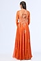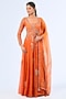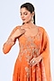 Featuring an orange kurta in chiffon base with embroidery. It is paired with a skirt and an organza dupatta. Accentuate it with dangler earrings and heels for festive occasions or wedding ceremonies.