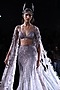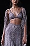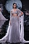 Featuring a pale mauve lehenga in shimmer tulle base with crystal detail. It is paired with a crystal sheeted choli and a cape having pearl hand embroidery, including feather detailing. Accentuate it with dangler earrings and heels for wedding ceremonies.