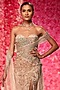 Dolly J features a mesmerizing Pale Yellow Gold Corset Gown that captivates with its elegance. The eye-catching piece is crafted in shimmer tulle with crystal and bead hand embroidery. Accessorize the designer gown with statement jewellery and heels for a sangeet or cocktail ceremony.