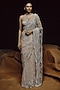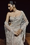 Featuring a pearl blush pink saree in tulle and net base with sequins and beads hand embroidery. It is paired with a blouse and an underskirt. Accentuate it with zircon or swarovski jewellery, embellished heels and a clutch for a sangeet or cocktail ceremony.