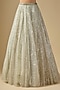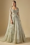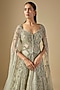 Featuring a pistachio green jacket in shimmer net base with hand embroidery. It is paired with a skirt. Style it with swarovski or zircon jewellery, sleek low bun and embellished heels, perfect for a cocktail, wedding, engagement or sangeet ceremony.