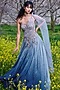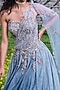 Featuring a blue ombre pleated gown in tulle base with an attached draped dupatta.