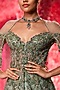 Powdery Sage Chiffon Chikankari Crystal Embroidered Jacket Lehenga Set
