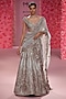 Dolly J features a mesmerizing Powdery Sage Lehenga Set that captivates with its elegance. The eye-catching lehenga is crafted in raw silk with thread work. It is paired with a choli and an organza dupatta. Accessorize the designer lehenga with statement jewellery and heels for a wedding, sangeet or engagement ceremony.
