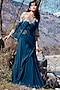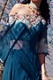 Featuring a prussian blue shaded cape in chiffon base with thread embroidery. It is paired with matching sharara pants and a lycra blouse.