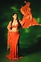 Red-Orange Chiffon Flared Slit Skirt Set