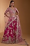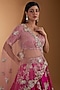 Featuring a fuchsia lehenga in raw silk base with gota, zardosi and thread embroidery. It is paired with an embroidered blouse and a pink tulle dupatta. Accentuate this lehenga set with a potli bag and block heels for a bridal look.